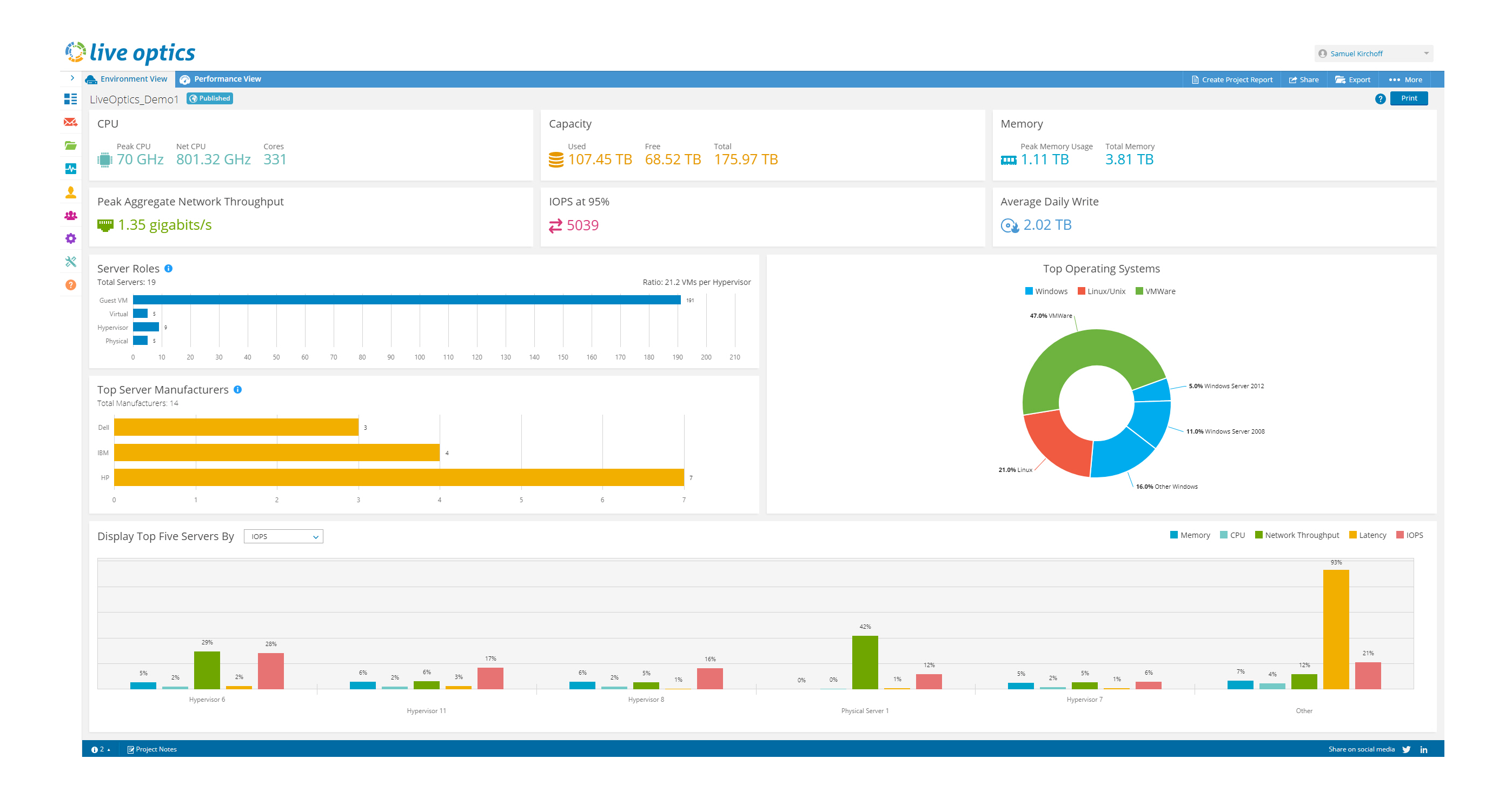 Live Optics 控制面板提供了您的 IT 環(huán)境及工作負載的清楚、準(zhǔn)確的視圖,讓您可以掌控一切。